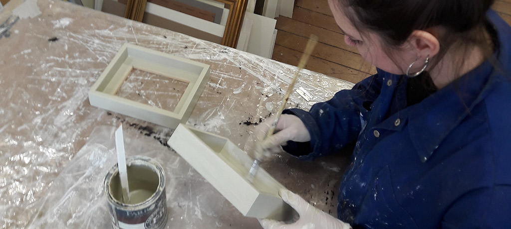 Upon arrival press no. 46 on the buzzer next to the entry door for Gibson Frames. We are on the Fourth Floor. If you prefer to take the trade lift one of us will come down and escort you upstairs to the workshop.